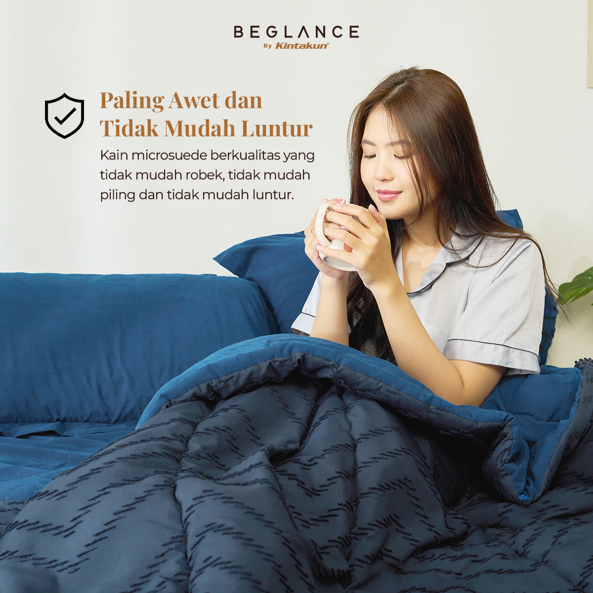 Bahan microsuede premium yang sangat lembut dan nyaman, membantu meningkatkan kualitas tidur lebih baik.