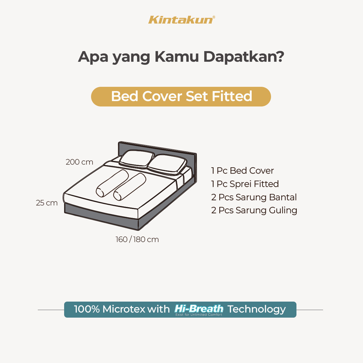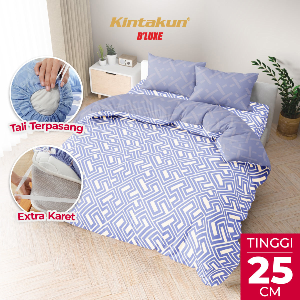 Bed cover Kintakun D’LUXE dengan tinggi 25 cm lebih pas untuk menutupi semua bagian permukaan kasur. Ditambah dengan karet penahan ekstra di setiap sudutnya dan ditambah dengan karet diagonal, sehingga membuat kasur selalu rapi dan tidak mudah berantakan. Anti ribet dan praktis karena tali pada sarung guling sudah terpasang rapi. Pilihan ideal untuk meningkatkan kenyamanan tidur. Dibuat dari serat microtex yang dilengkapi dengan Teknologi Hi-Breath menghasilkan kain yang lebih lembut, halus, menyerap keringat lebih cepat, anti gerah dan nyaman di kulit. Ditambah dengan Disperse Printing yang membuat motif sprei tidak luntur dan lebih nyata. Mempunyai sertifikat K3L sehingga sprei lebih aman. Kualitas terjamin dan harga terbaik di kelasnya. Bangga buatan Indonesia!