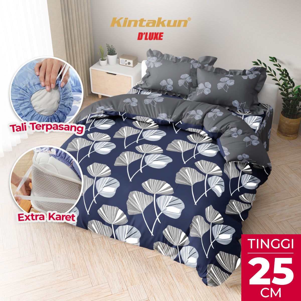 Bed cover Kintakun D’LUXE dengan tinggi 25 cm lebih pas untuk menutupi semua bagian permukaan kasur. Ditambah dengan karet penahan ekstra di setiap sudutnya dan ditambah dengan karet diagonal, sehingga membuat kasur selalu rapi dan tidak mudah berantakan. Anti ribet dan praktis karena tali pada sarung guling sudah terpasang rapi. Pilihan ideal untuk meningkatkan kenyamanan tidur. Dibuat dari serat microtex yang dilengkapi dengan Teknologi Hi-Breath menghasilkan kain yang lebih lembut, halus, menyerap keringat lebih cepat, anti gerah dan nyaman di kulit. Ditambah dengan Disperse Printing yang membuat motif sprei tidak luntur dan lebih nyata. Mempunyai sertifikat K3L sehingga sprei lebih aman. Kualitas terjamin dan harga terbaik di kelasnya. Bangga buatan Indonesia!