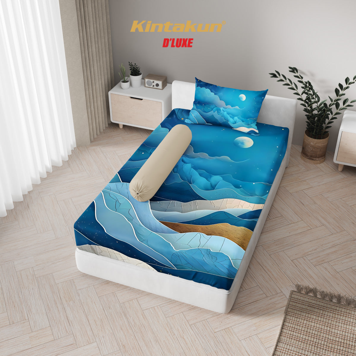 Sprei Kintakun D’LUXE Tinggi 25 cm lebih pas untuk menutupi semua bagian permukaan kasur. Ditambah dengan karet penahan ekstra dan karet diagonal di setiap sudutnya, sehingga membuat kasur selalu rapi dan tidak mudah berantakan. Anti ribet dan praktis karena tali pada sarung guling sudah terpasang rapi. Pilihan ideal untuk meningkatkan kenyamanan tidur. Dibuat dari serat Microtex yang dilengkapi dengan HiBreath Tech menghasilkan kain yang lebih halus, cepat menyerap keringat, anti gerah dan nyaman di kulit. Menggunakan Disperse Printing, membuat motif sprei tidak luntur dan lebih nyata. Mempunyai sertifikat K3L sehingga sprei lebih aman. Kualitas terjamin dan harga terbaik di kelasnya. Bangga buatan Indonesia!