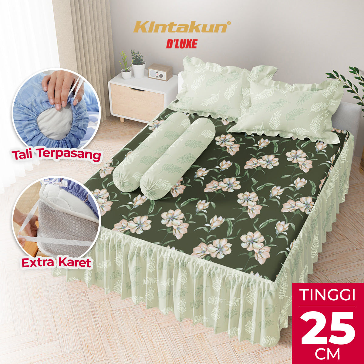 - Menutup Sempurna untuk Tinggi Kasur 25 cm