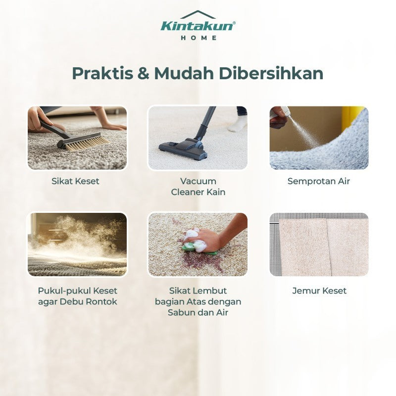 Kintakun Home Keset Serbaguna dengan ukuran persegi 40x120 cm yang anti slip, anti geser dan menjaga keset tetap pada tempatnya. Dengan teknik serat kain nilon low pile yang padat, sangat nyaman untuk kulit, menyerap air & lembut sehingga membuat ruangan tetap kering & bersih.